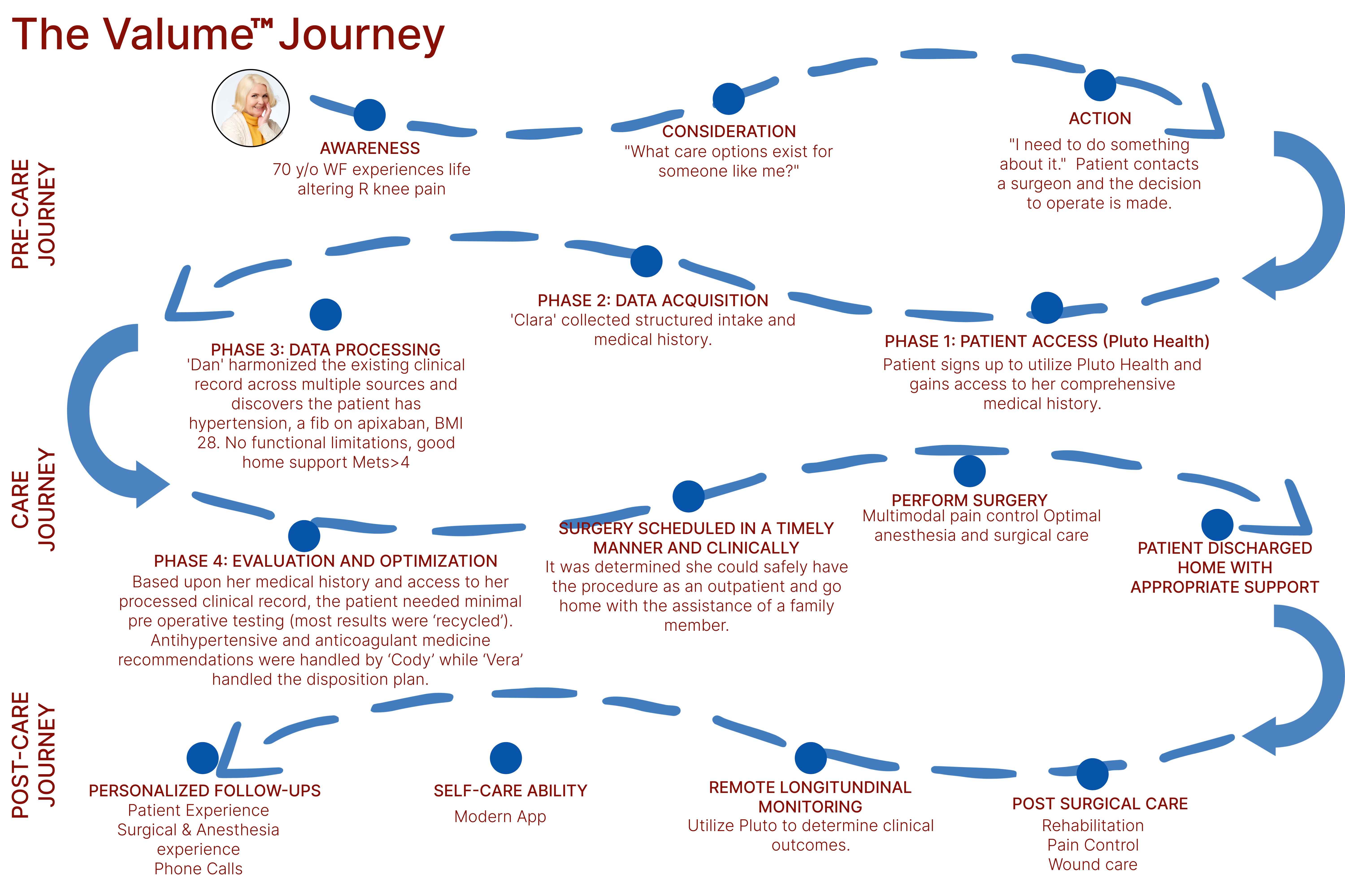 Help.AI maps the full patient journey – from decision to operate to post-surgical rehab – embedding decision points for primary care, specialists, anesthesia, and facilities.